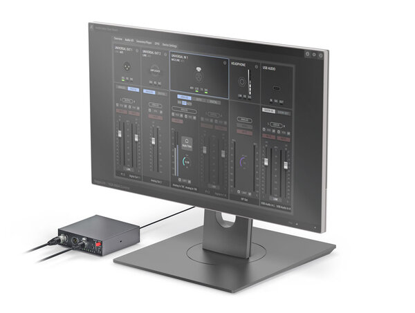 Workplace (Line, AES3) - Compact all-in-one interface solution designed to meet all audio needs of a media workplace, including Mic-Pre, HP-Out, and stereo speakers.